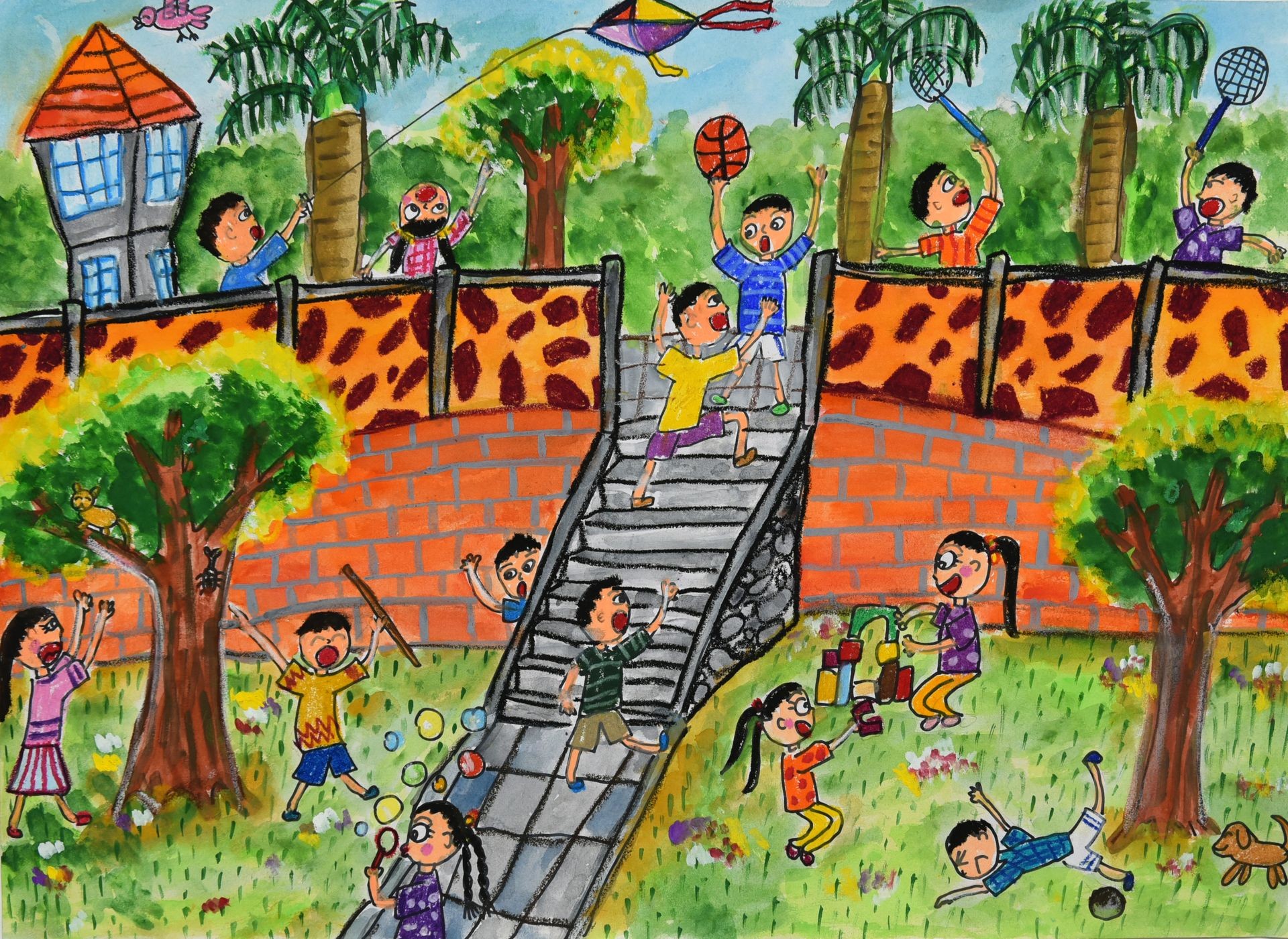 傅O綺小朋友: 社區中的公園是我最喜歡去的地方,除了有大片綠地及大樹外,更有許多鄰居及同學聚集,大家快樂的玩遊戲、聊天,有時更會玩到忘了回家。