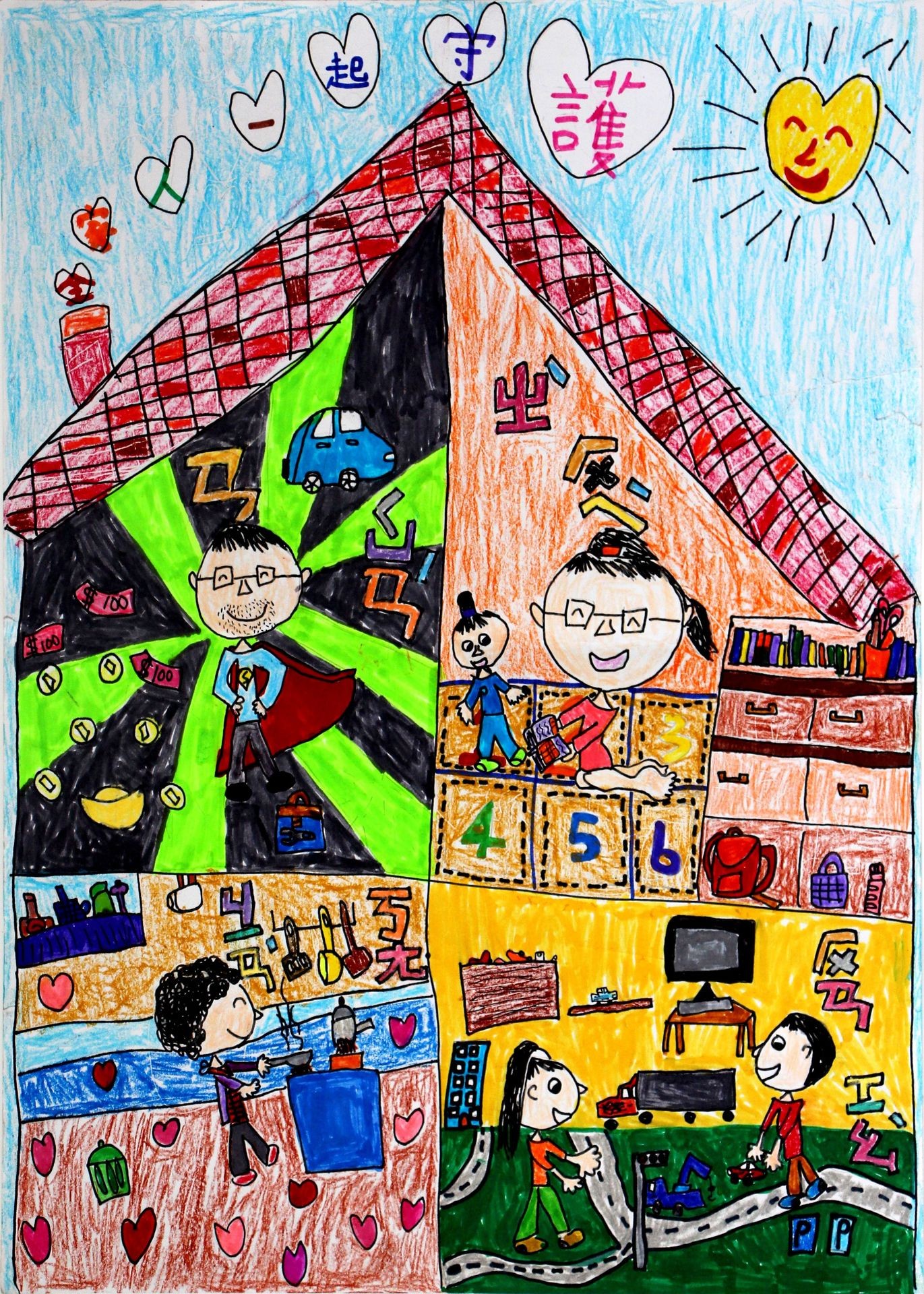 蘇O榕小朋友: 家是全家人共同守護的~ 爸爸守護安全,媽媽守護智慧,奶奶守護健康,孩子守護歡笑。全家一起守護我最愛的家,幸福的家。