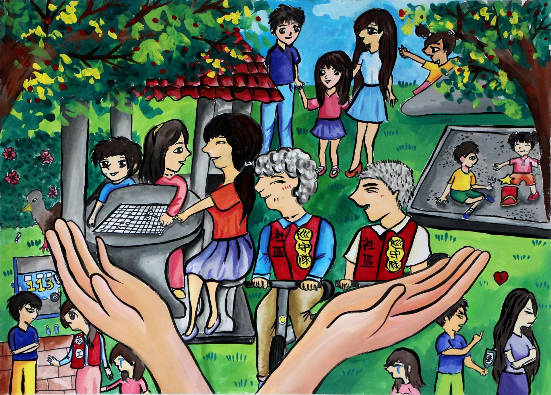 李O銜小朋友: 辛苦的巡守隊,每天都會在社區巡邏,帶給我們一個安全、和樂的生活環境,讓需要幫助的孩子或家庭,有一個立即性的求助管道,讓社區充滿愛與力量。