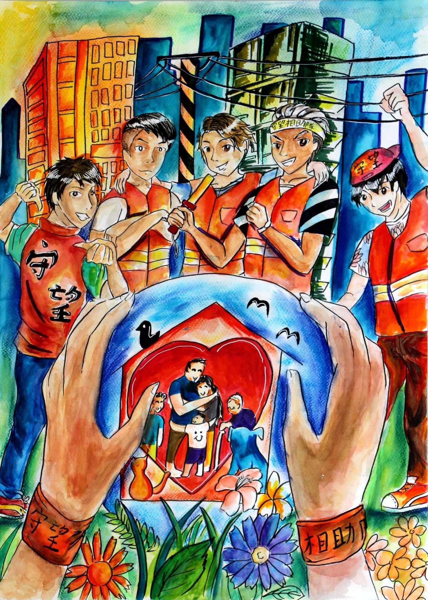 潘O樺小朋友: 社區安全是大家責任,但總有一群熱血的居民組成守望相助隊,每天辛苦巡視社區,以保安寧,內心對他們的付出有無限的感激。