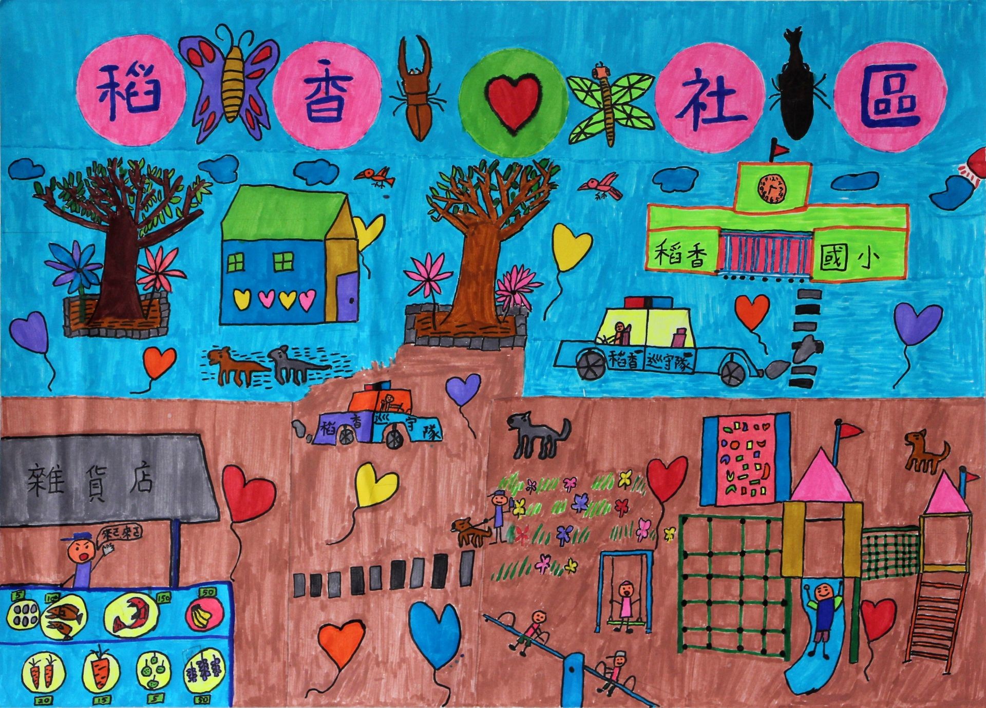 莊O丞小朋友: 社區裡的叔叔和伯伯,每天開著巡邏車當每個家庭的守護者,保護著我們的溫暖的家,讓整個稻香社區充滿著愛與溫暖。