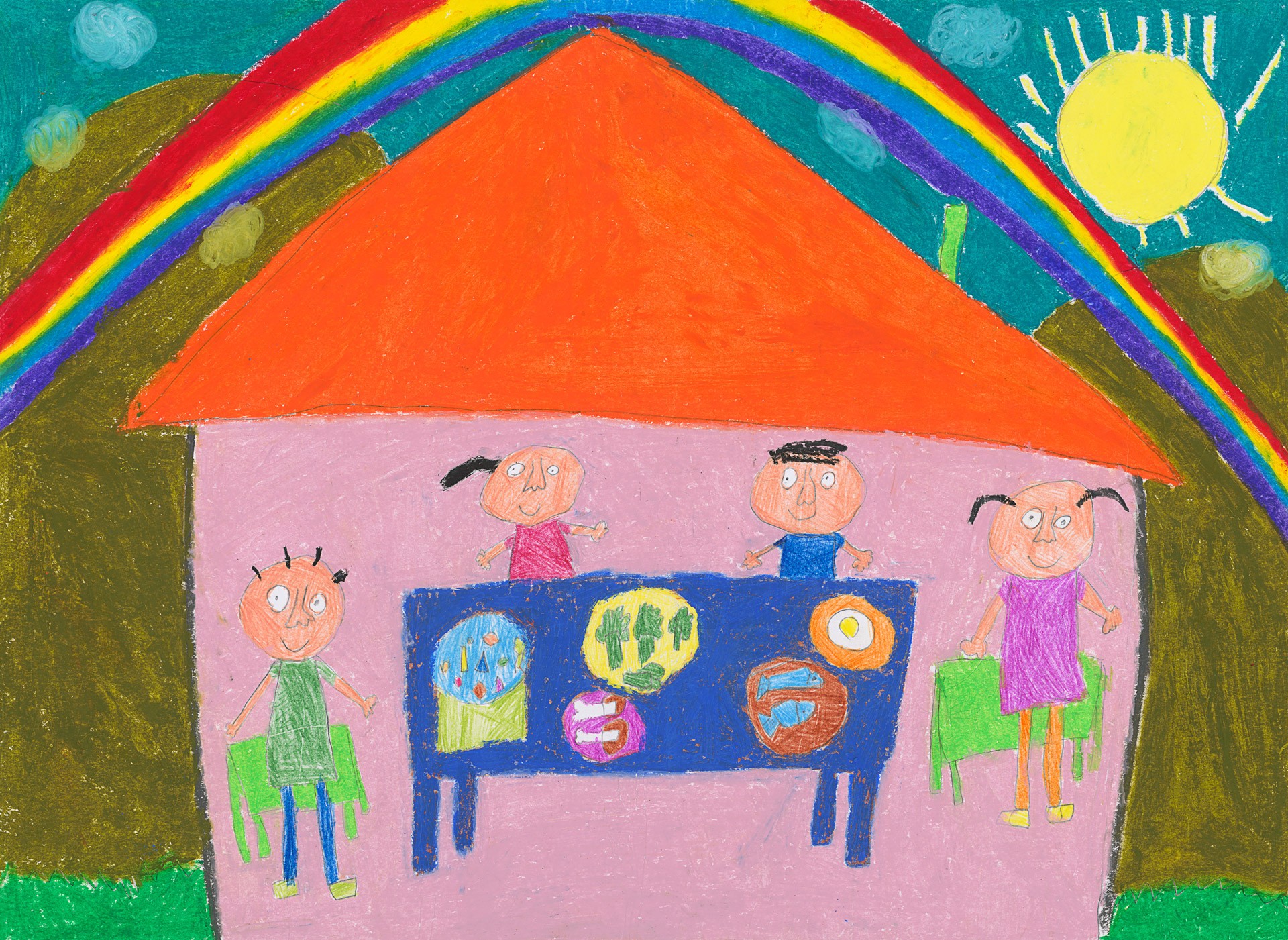 大家一起吃飯的時候,因為跟家人聚在一起吃飯我覺得很開心。
