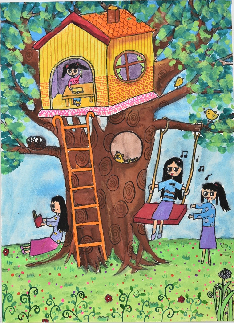 林O軒小朋友: 素描大自然的世界,由樹屋引導出快樂又自在的生活,無拘無束,好不生氣。