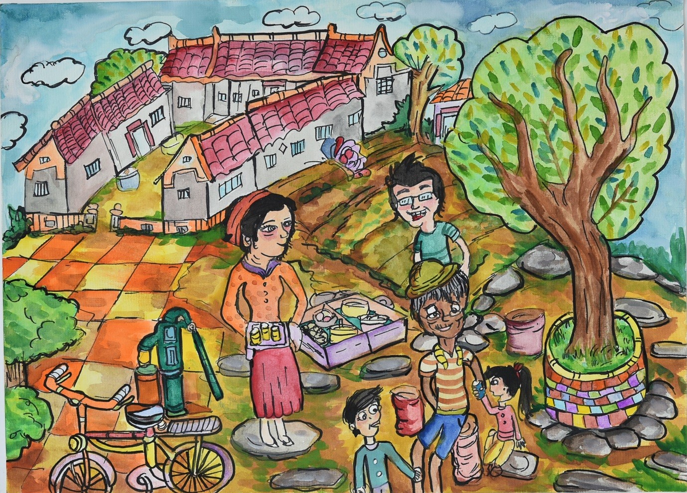 張簡O晅小朋友: 這是我夢想的農村生活,可以在鄉下與阿公、阿嬤在大樹下泡茶、聊天,看著蝴蝶飛舞,還可以騎腳踏車。