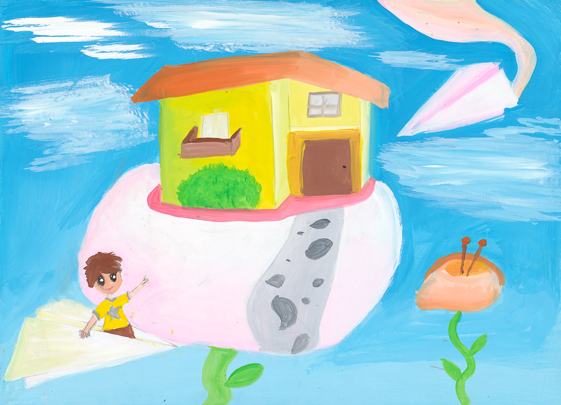 我夢想的家有牽牛花,帶給大家歡樂,家是豐富的藍天,帶給希望及幸福。