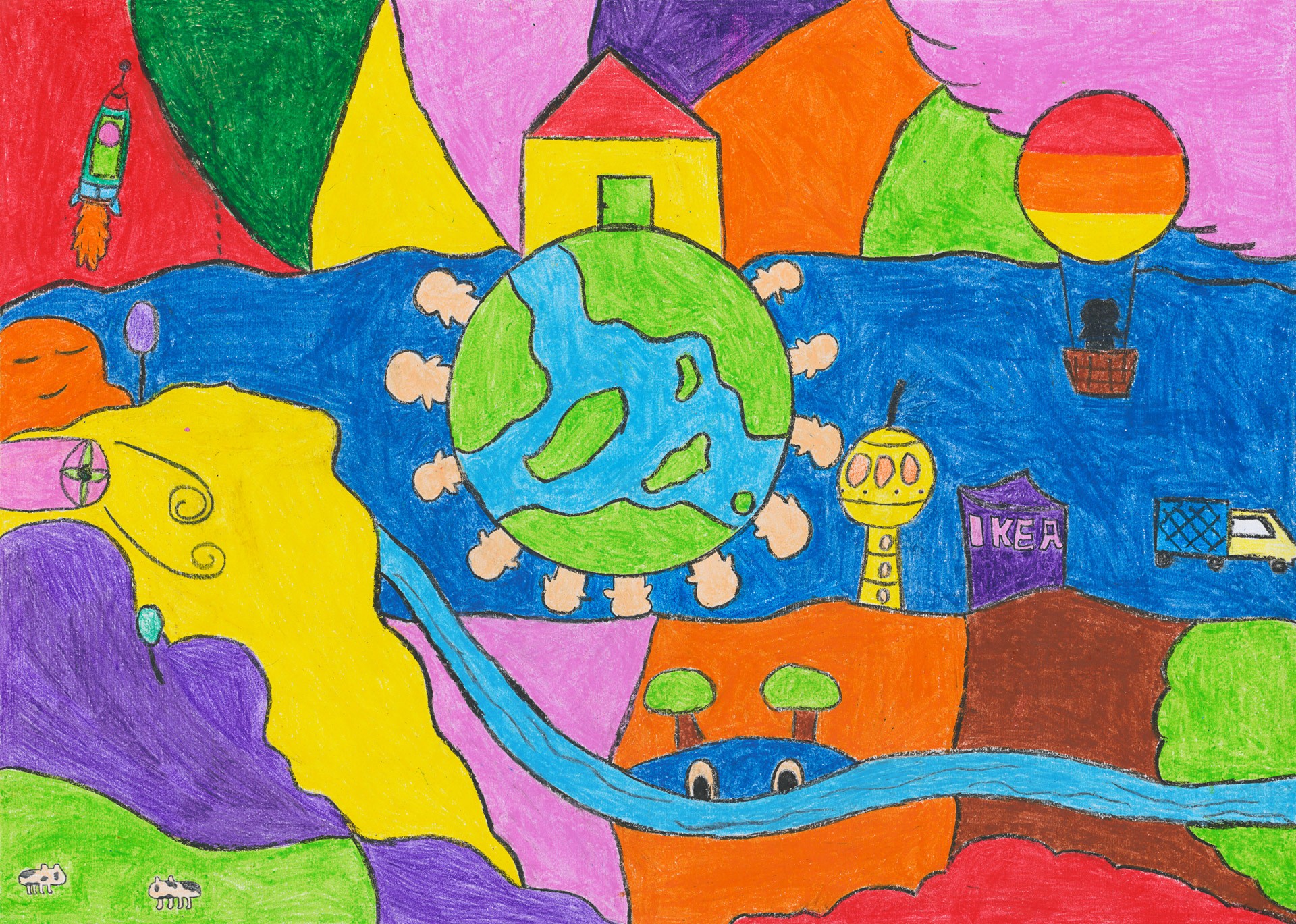 從小就幻想自己可以登上月球上看看,也想在上面創造屬於我自己的一片天,就這樣畫出了,我夢想的家。