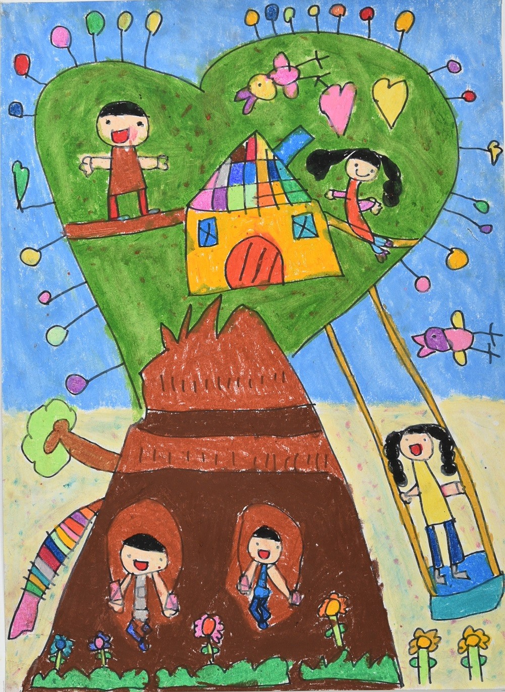 董O汝小朋友: 我夢想的家,就是住在樹上,聽聽悅耳的鳥叫聲,跟樹兒一起做好朋友,一起盪鞦韆、溜滑梯,在樹下跳繩、聞花香,超開心的唷~