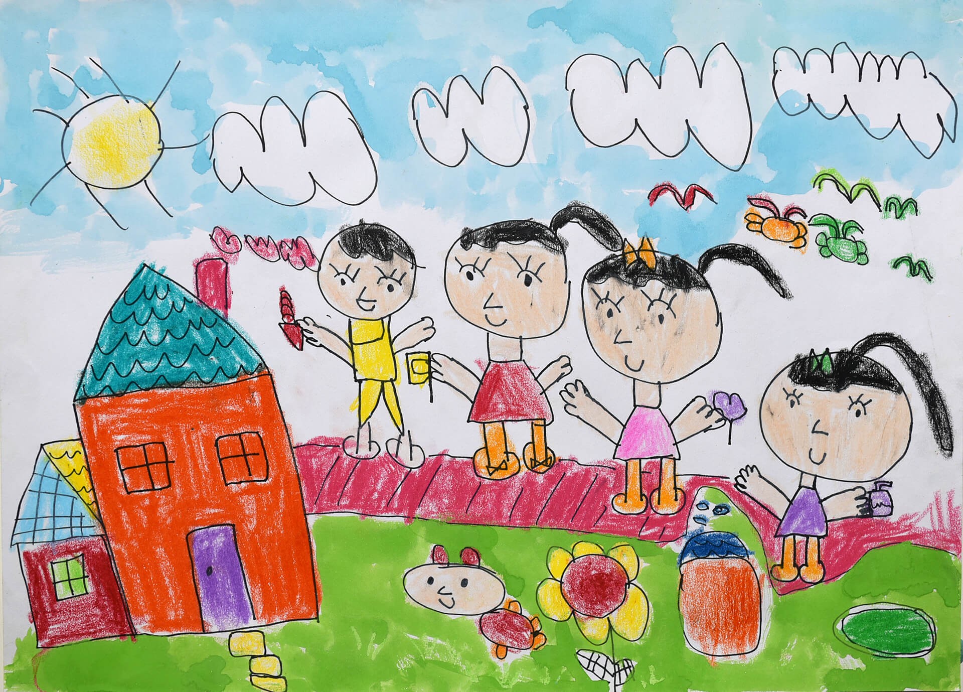 丁O茗小朋友: 我夢想的家住著我、姐姐、媽媽和爸爸還有一隻我最愛的兔子,我每天和姊姊一起畫畫。