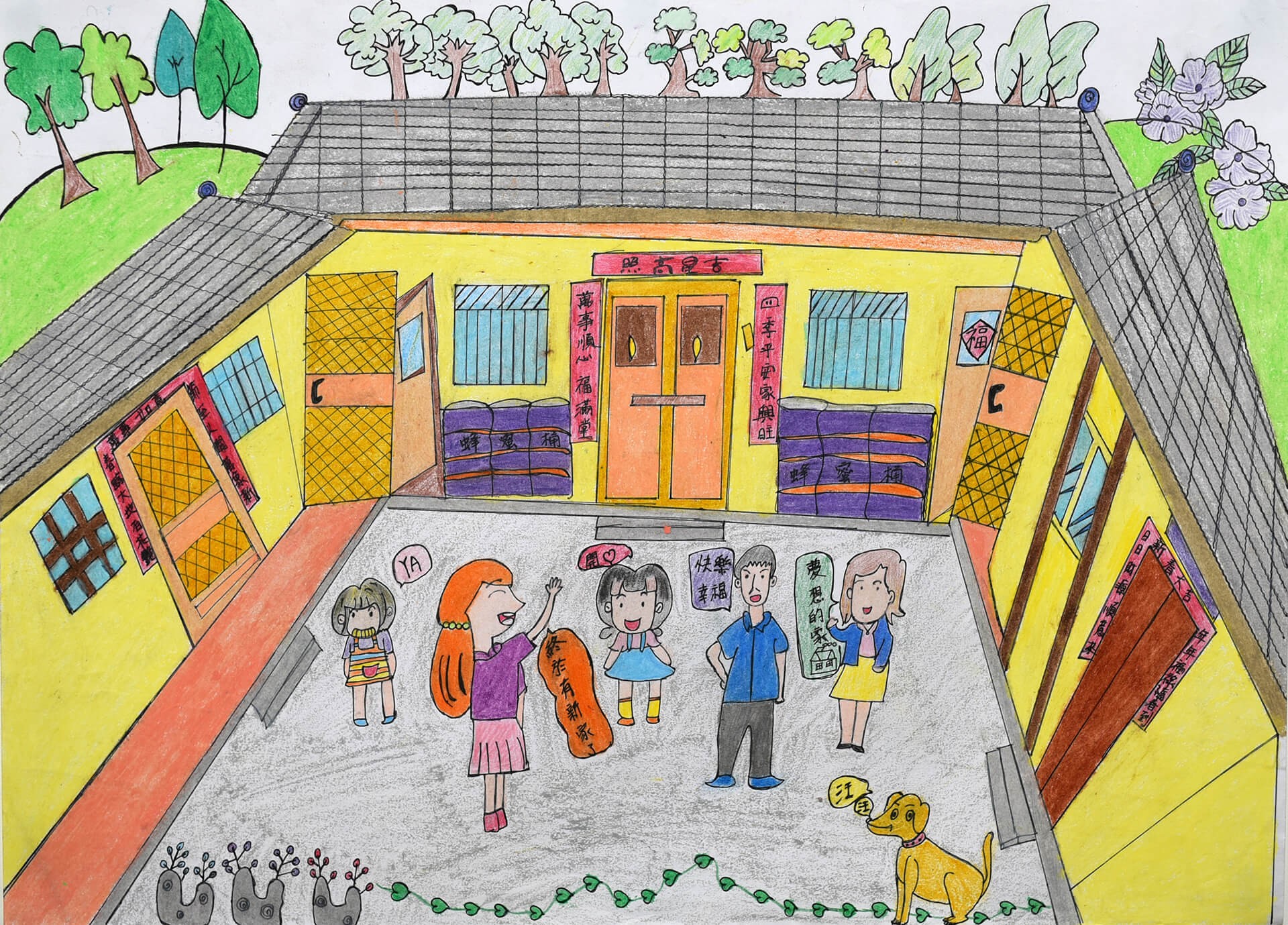 吳O妤小朋友: 因為外公外婆家剛好住中部,住家是三合院,我希望可以住的房子也是像外公家一樣的三合院,前面有寬敞的院子,後面有大山坡,可以養動物。