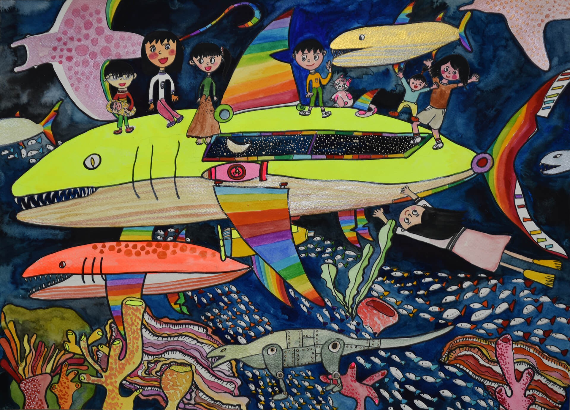 張O宗小朋友: 我夢想的家是全家人住在像太空的海洋中,一家人時常聚在一起,平安快樂的在移動鯊魚城堡生活。