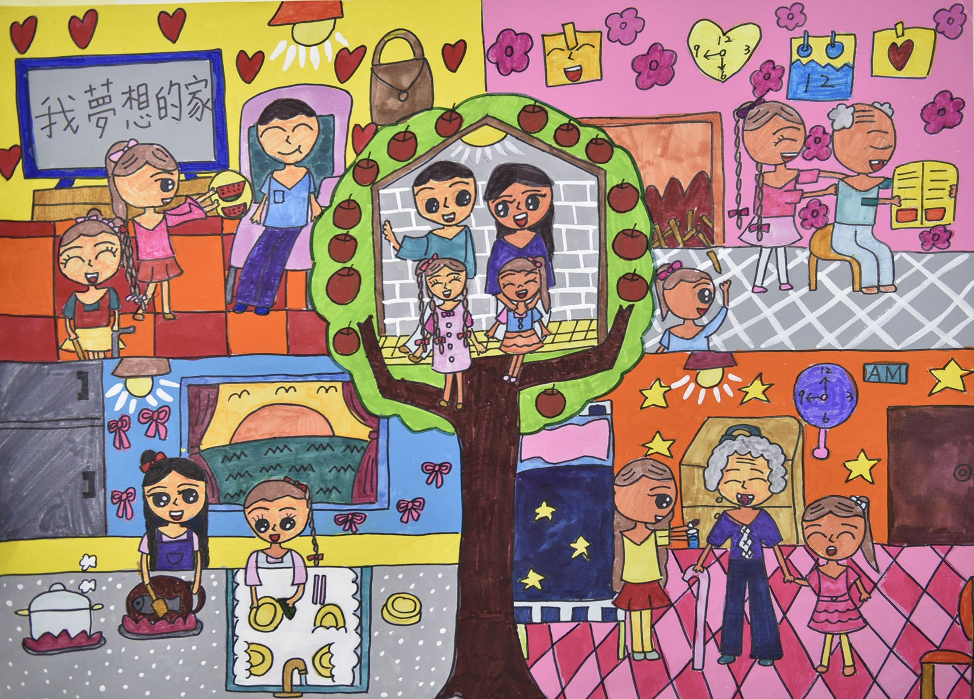 我夢想的家就是和爺爺、奶奶、爸爸、媽媽、妹妹,全家人共同平安快樂的生活。