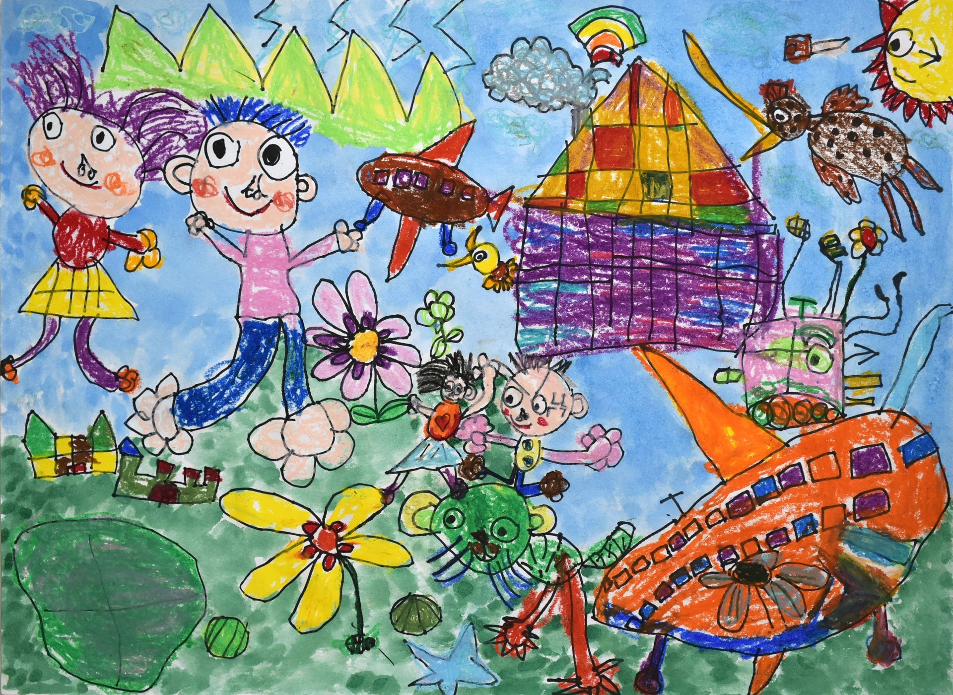 我夢想的家是磚頭蓋的堅固房子,是彩色的還有愛心圖案,旁邊種了很多漂亮的花,有兩台飛機還有足球場,我最喜歡和爸爸、媽媽還有姐姐住在一起了!