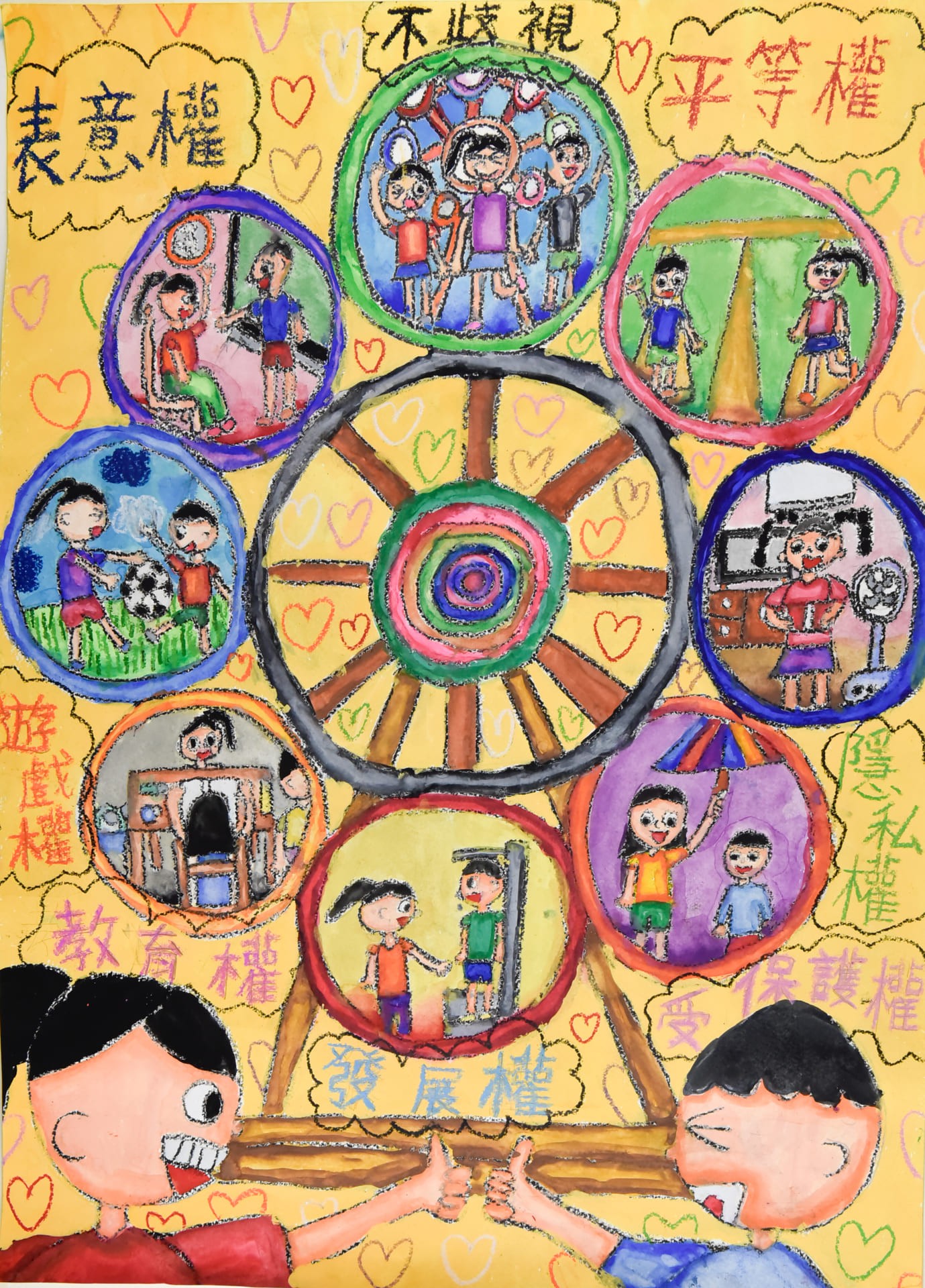 兒童享有表意權,平等權、不歧視權、遊戲權、教育權、發展權、隱私權,受保護權,尊重兒童權利,人人有責。
