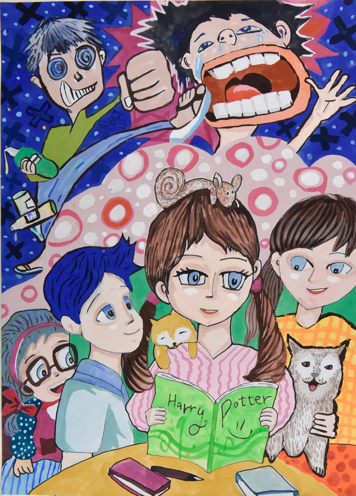 至今雖然兒童權利觀念普及,但還是有兒童的權益受害,因此把售權利的兒童畫出來,以作對比。