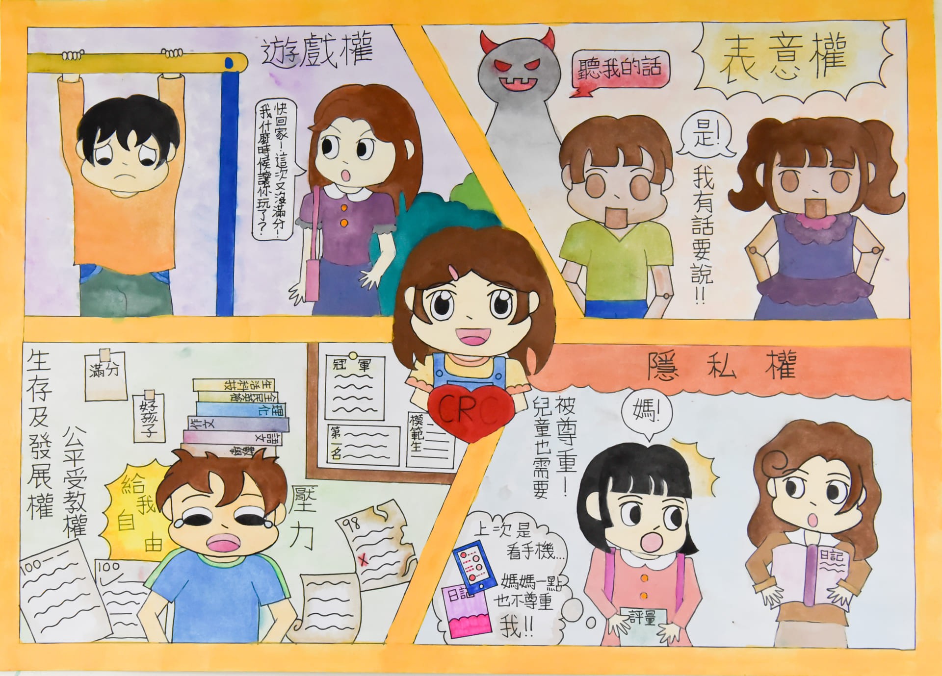 我認為兒童必須擁有遊戲、隱私、表意、受教權,如此兒童才能保有自我,也才能開心的生活。