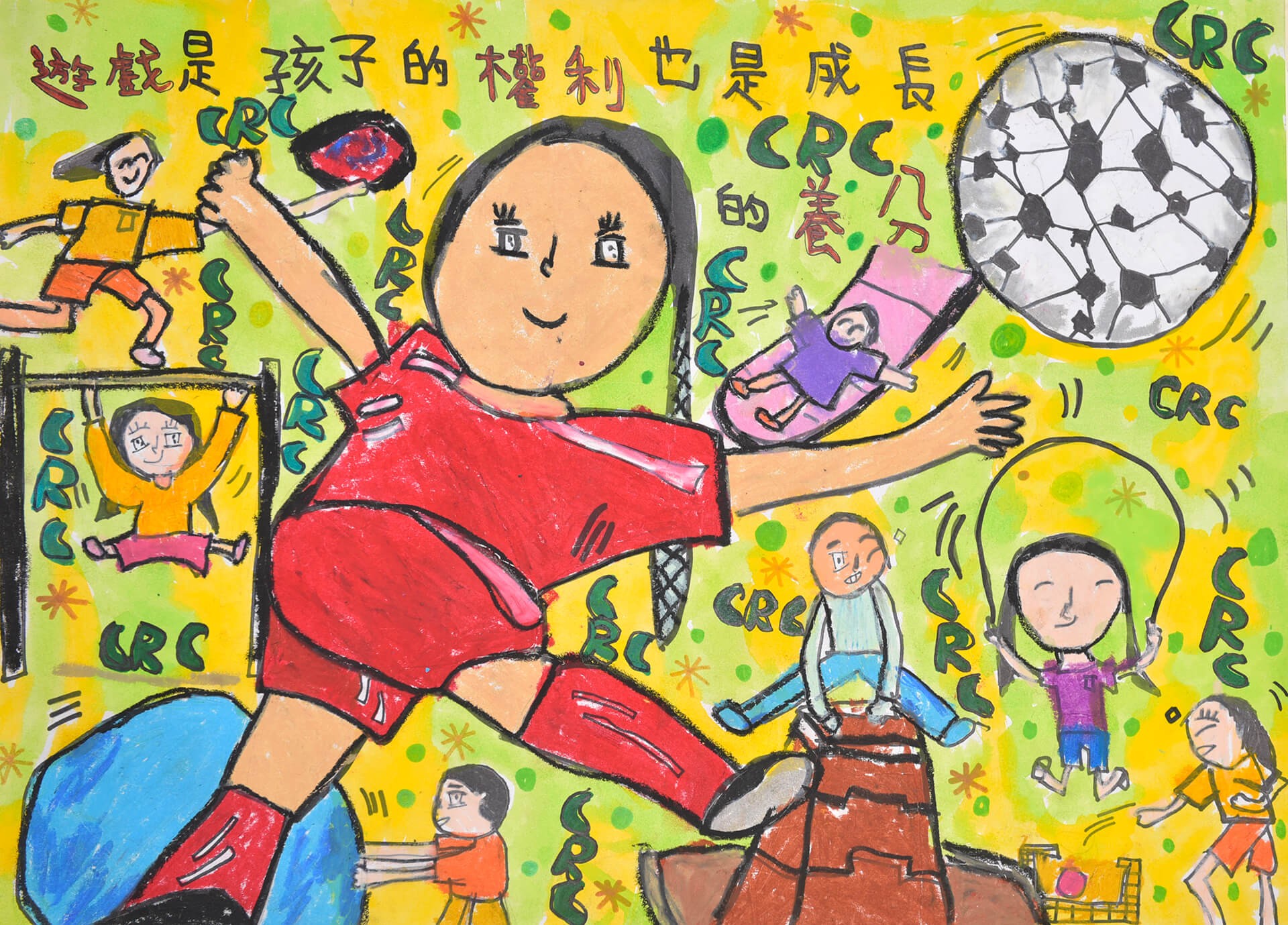 畫作主題:遊戲權 孩子就是一株小樹苗,遊戲及快樂是孩子們成長所必需的養分,也是他們探索世界重要的因子。