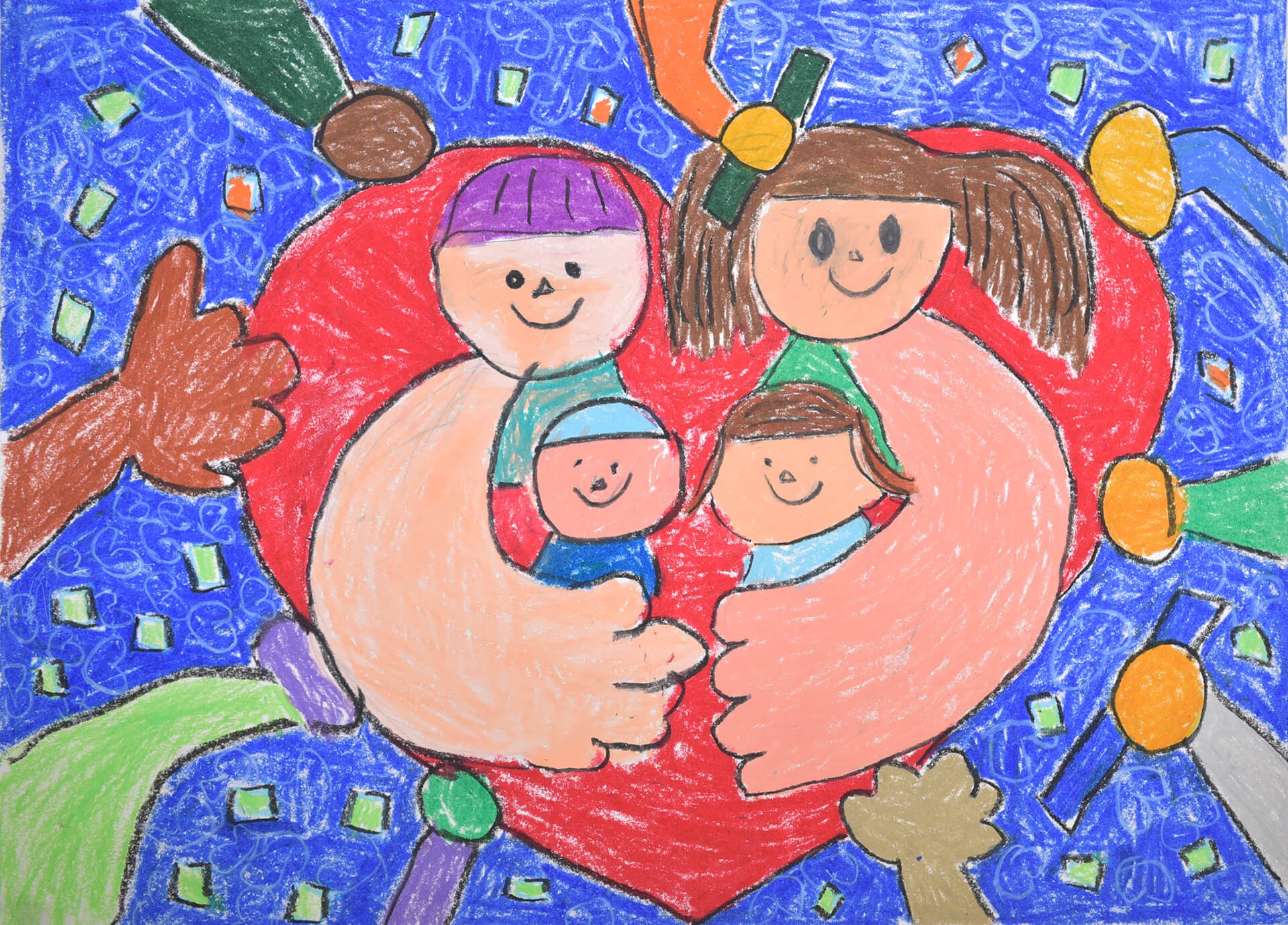 畫作主題:受保護權 不使用體罰、遠離家庭暴力、用愛關心與保護孩子。