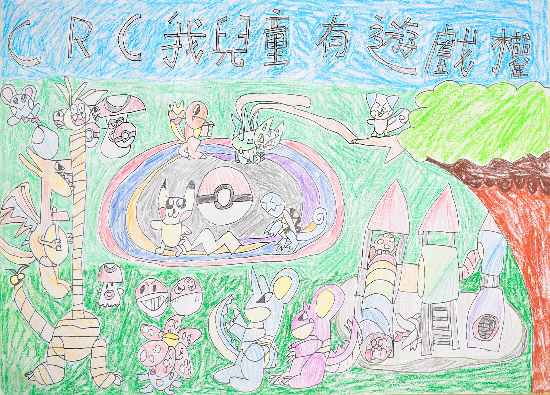 畫作主題:遊戲權 每個小朋友都有權利去從事適合自己年齡且安全、快樂的遊戲與場所。