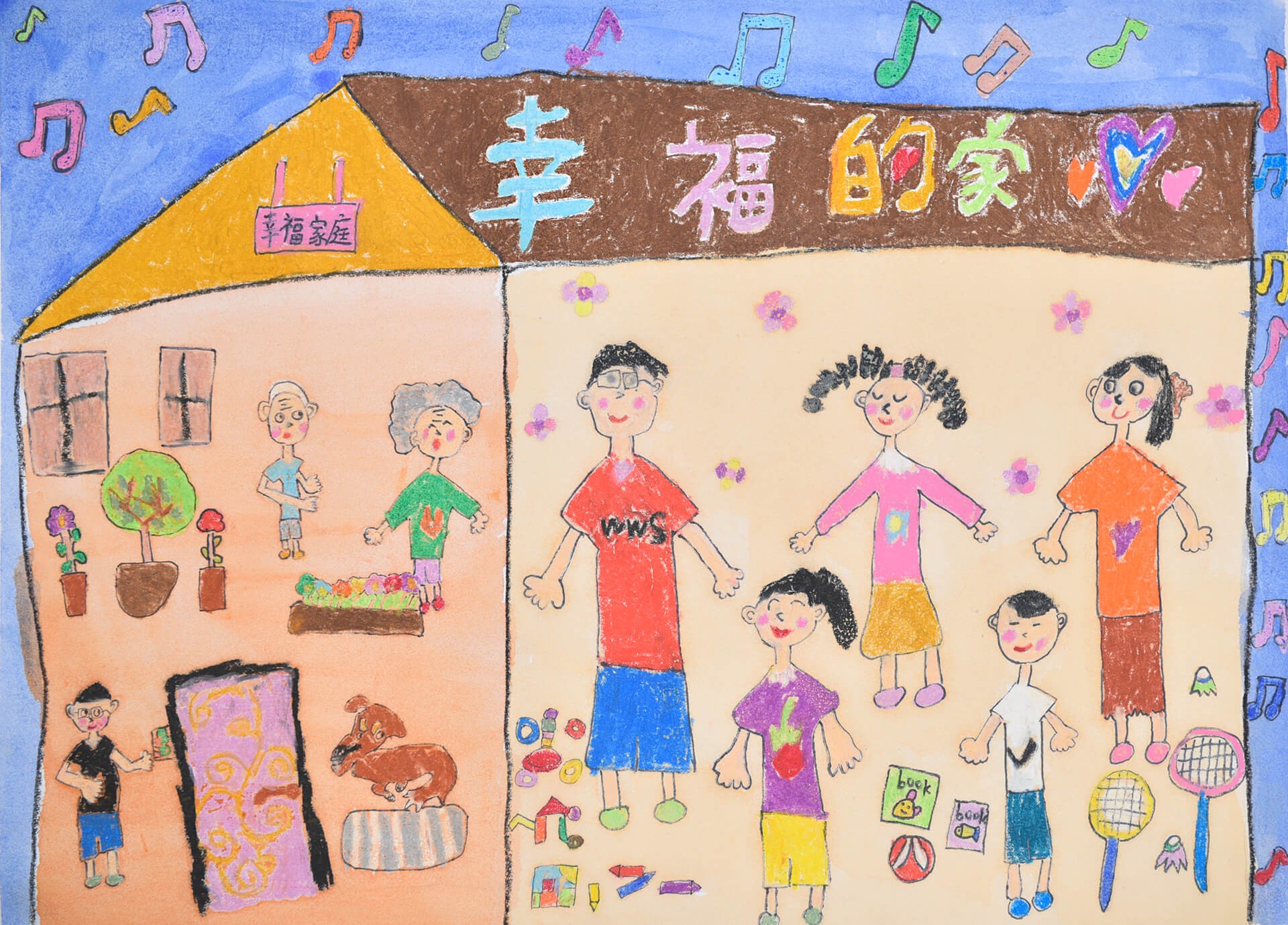 畫作主題:受保護權 孩童在充滿愛與和諧的環境裡才能健康、平安、快樂的成長與茁壯。孩子的笑容來自於家庭的愛與關懷。