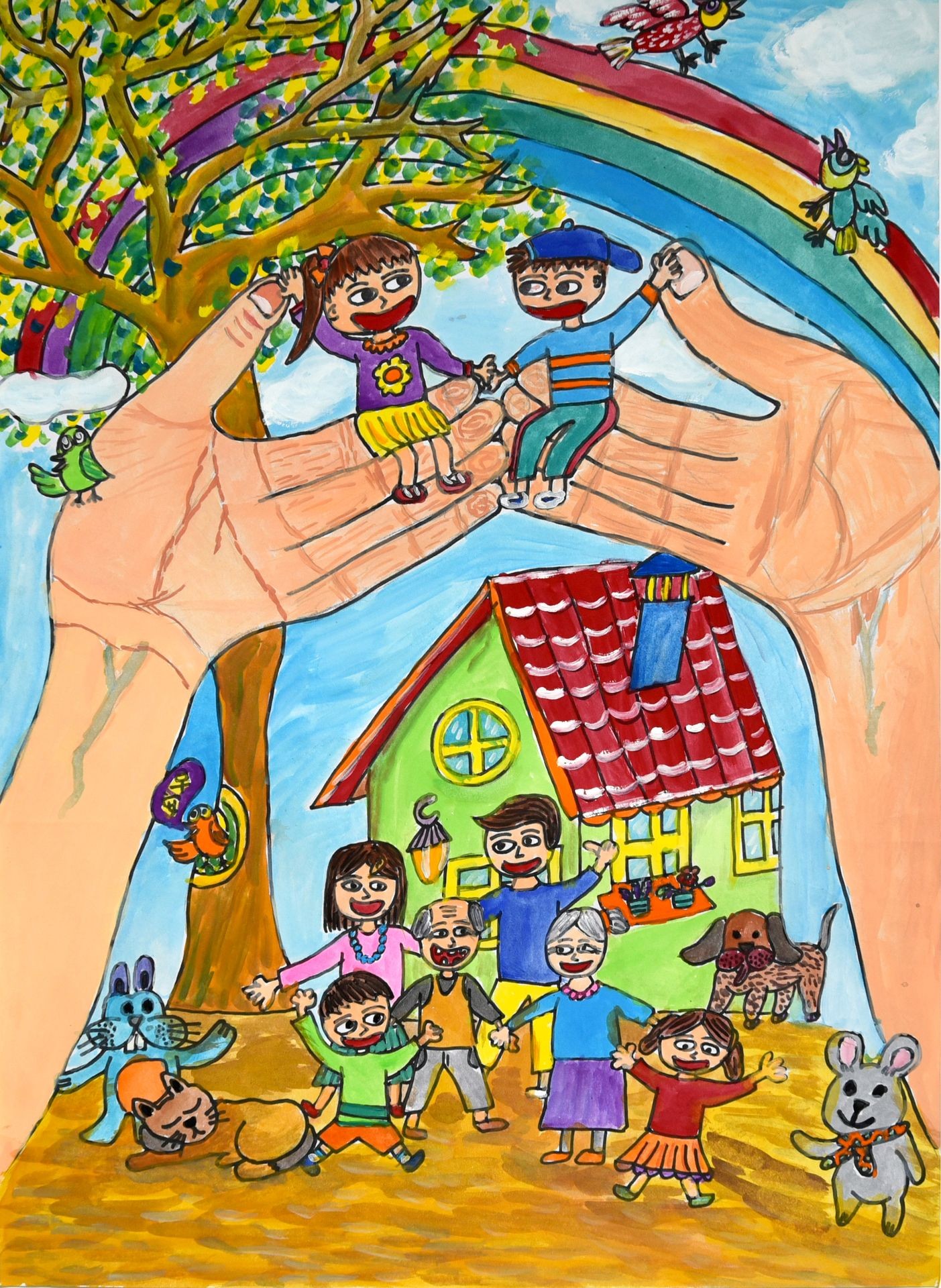 我夢想中的幸福家庭是:阿公、阿嬤、媽媽、哥哥、姐姐、弟弟、妹妹一起在愛的環境中生活。在爸爸、媽媽的保護下,我們都是快樂的小天使。