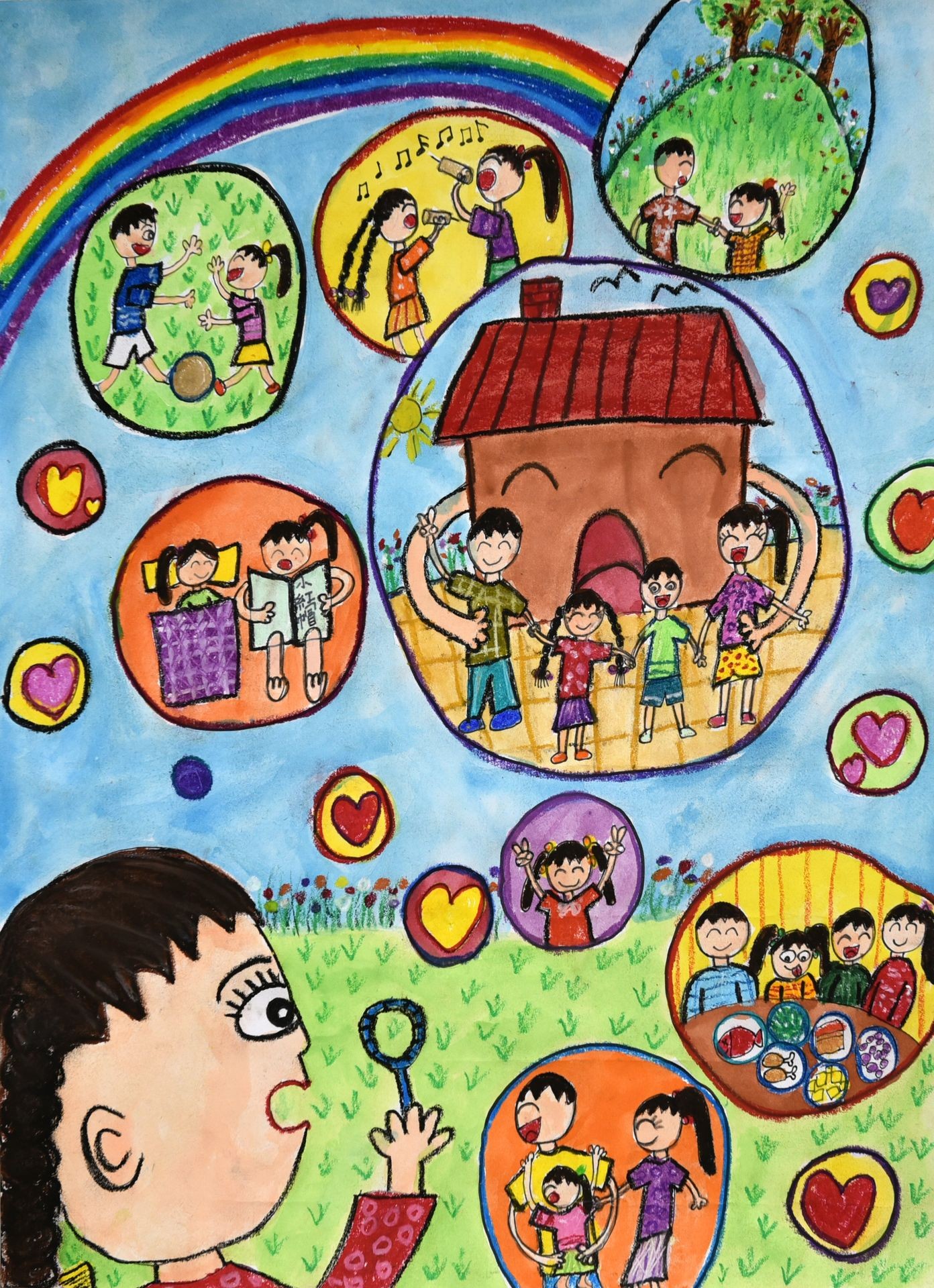 我夢想的家是晚上全家在一起吃飯,假日裡全家一起爬山,一起打球,一起大聲唱歌,快快樂樂在一起。