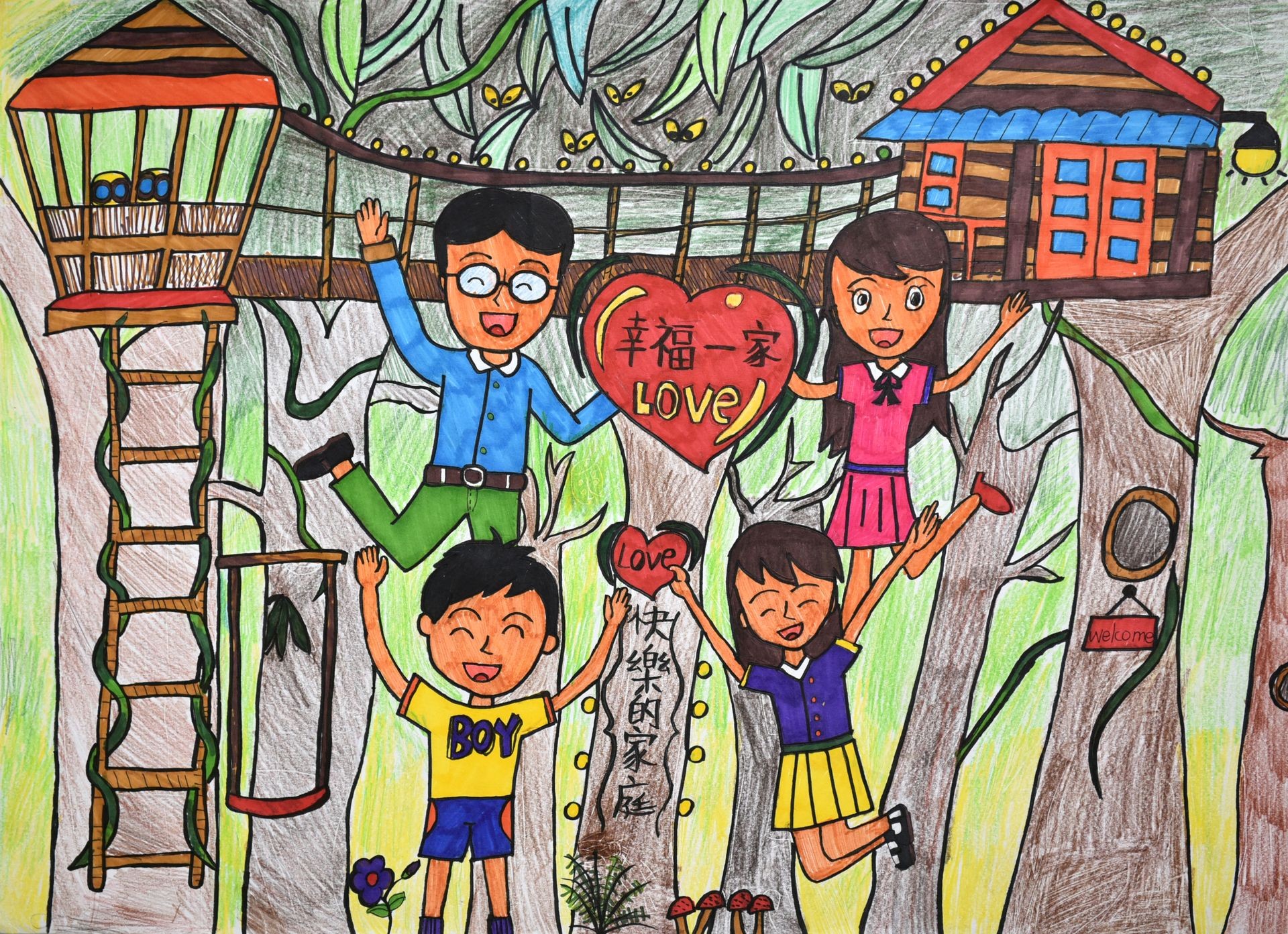 我夢想全家能在神秘的叢林裡蓋樹屋,並一起觀察動物及昆蟲,天天能享受快樂幸福的生活。