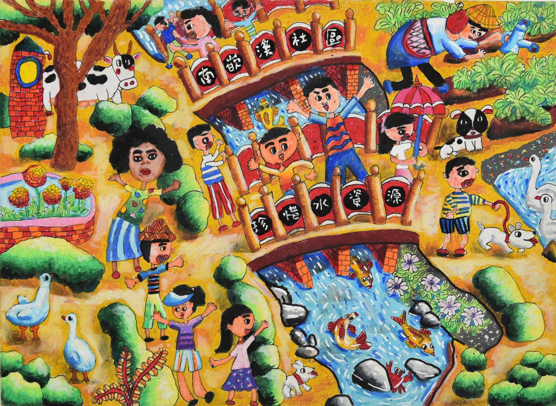 郭O為小朋友(吳有登老師指導): 我家住桃園南崁溪,河川清澈、有魚有蝦、有農場,是個美麗的好地方。