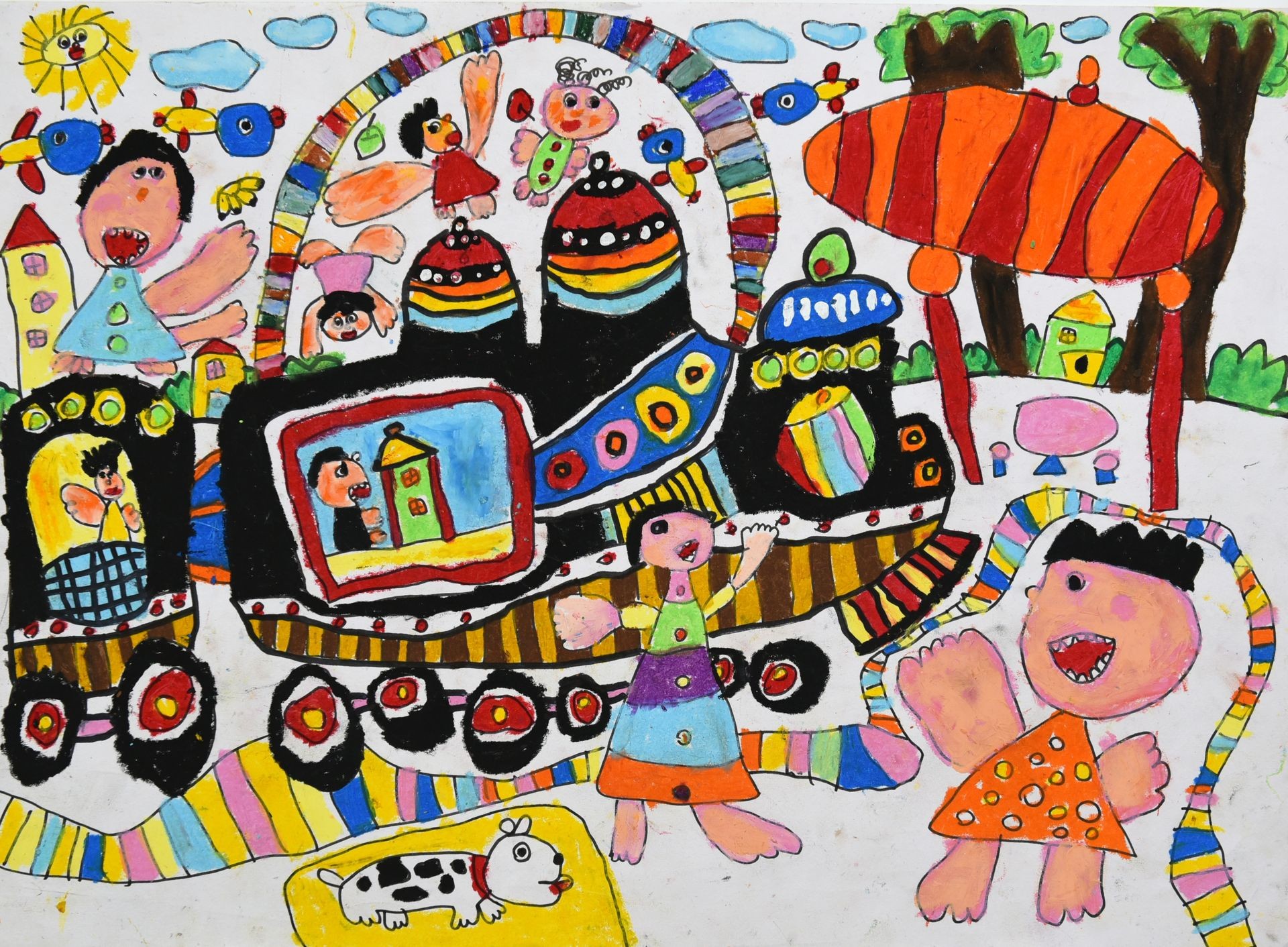 林O齊小朋友(吳有登老師指導): 我家社區公園有一個很大的火車頭,好多小朋友都在上面蹦蹦跳跳好有趣。