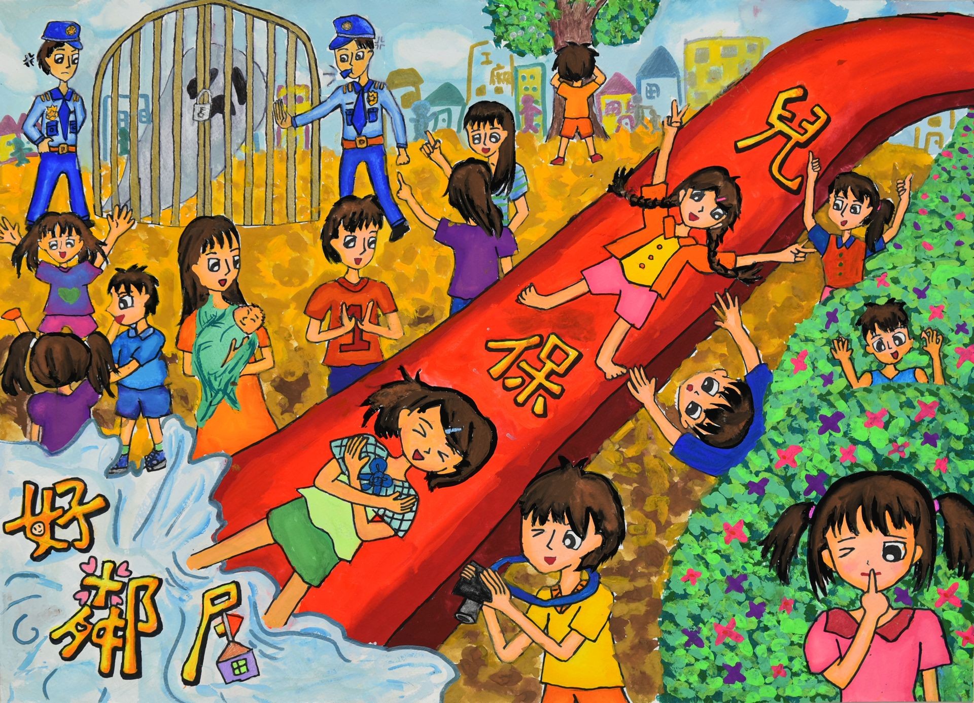 蔡O鍒小朋友: 『兒保好鄰居』,我心目中的理想社區是個充滿歡笑、生活安全的地方,鄰居們守望相助,壞人是絕對無法進入的,孩子們也可以安心又盡情的在那裡遊玩。