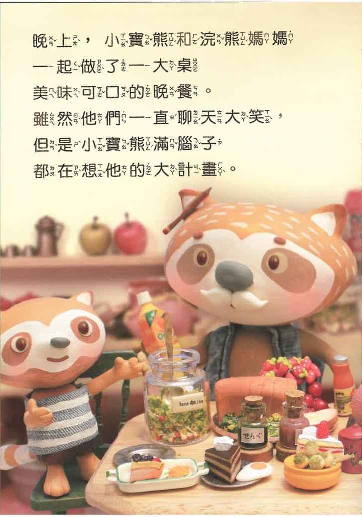 小寶熊因為家裡有一些事情,暫時住在浣熊爸爸媽媽家,接著,有好多人一起幫忙小寶熊